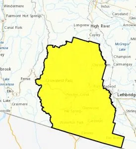 Wind warning issued for Crowsnest Pass, gusts up to 120 km/hr